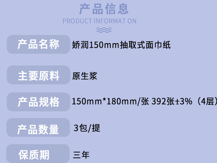 上一篇:嬌潤3包185抽取式面巾紙
